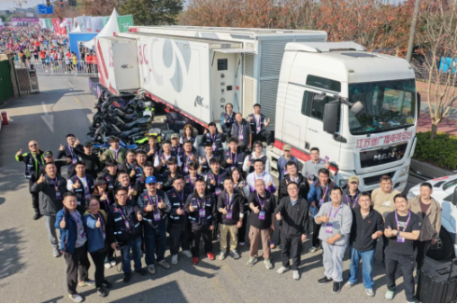 本次南京馬拉松直播,總臺共出動兩臺轉播車、一臺衛星車,以及近百人組成的專業制作團隊。全程設置了34個機位,包括兩套地面“馬車”(馬拉松比賽專用轉播車簡稱)系統及9臺飛行器拍攝設備。地面“馬車”系統高速貼地行駛,9臺飛行器從空中俯瞰賽道,成功實現“天上—地面—跑者”三維視角的無縫切換。通過更豐富的視角和更立體的畫面,全面呈現了本屆南京馬拉松賽事的盛況。賽事信號實時回傳,總臺江蘇衛視、體育休閑頻道并機直播,ai荔枝,荔枝新聞以及重點社媒矩陣同步分發。